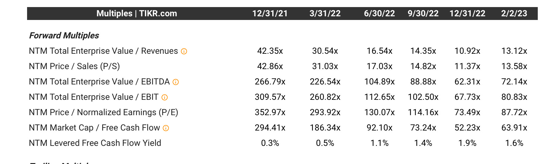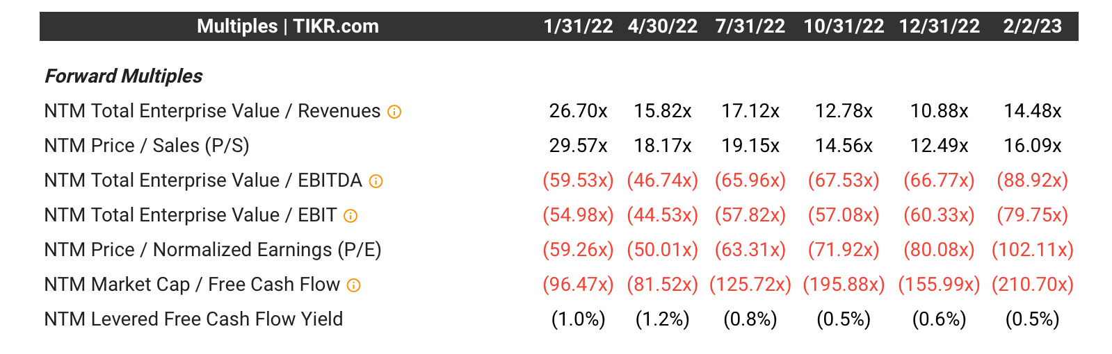 With the growth and profitability metrics in mind, let’s take a look at next twelve months enterprise value to revenues.