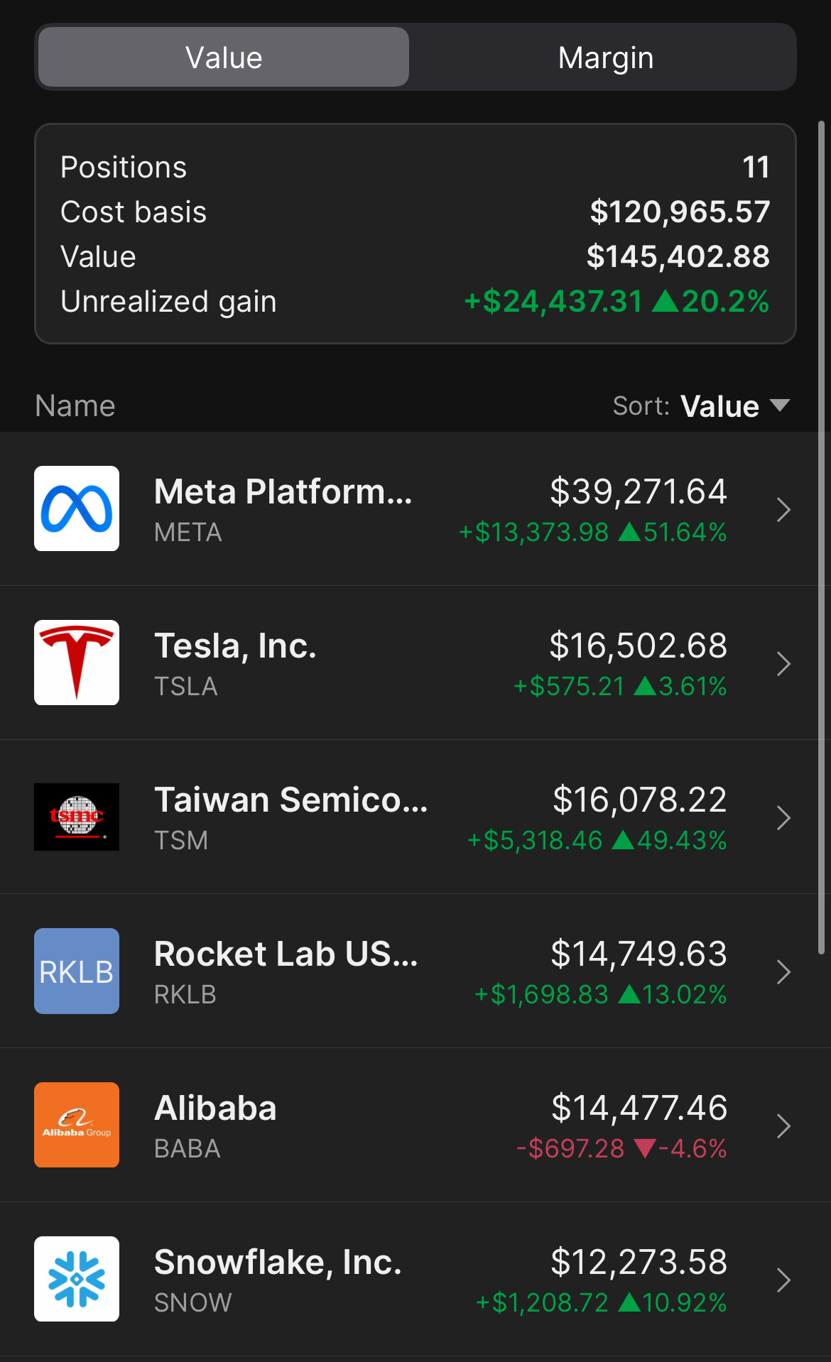 Portfolio Value: $146,285 (+$45,000 YTD)