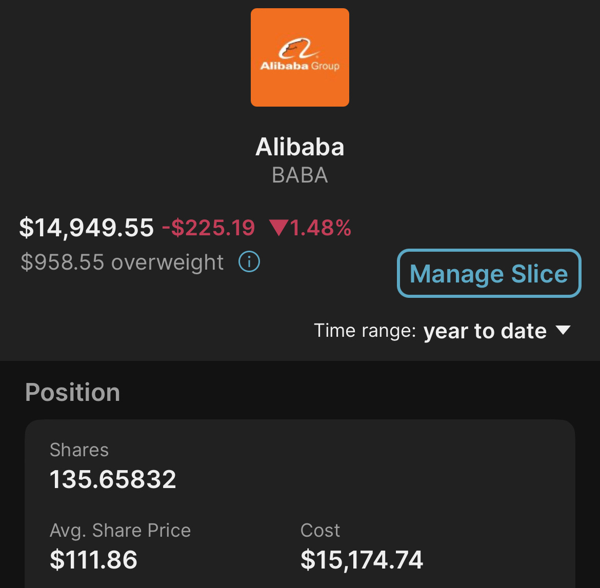 I never thought I’d own Alibaba and this could end up being a huge mistake. I won’t let the position get too large to where a 50% drop would be stressful. For me, that’s around $30,000 so I have plenty of room.