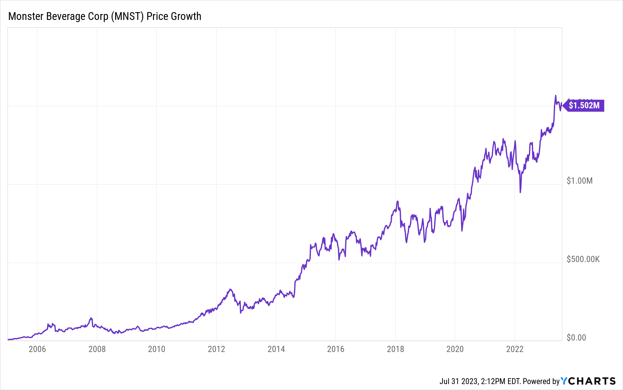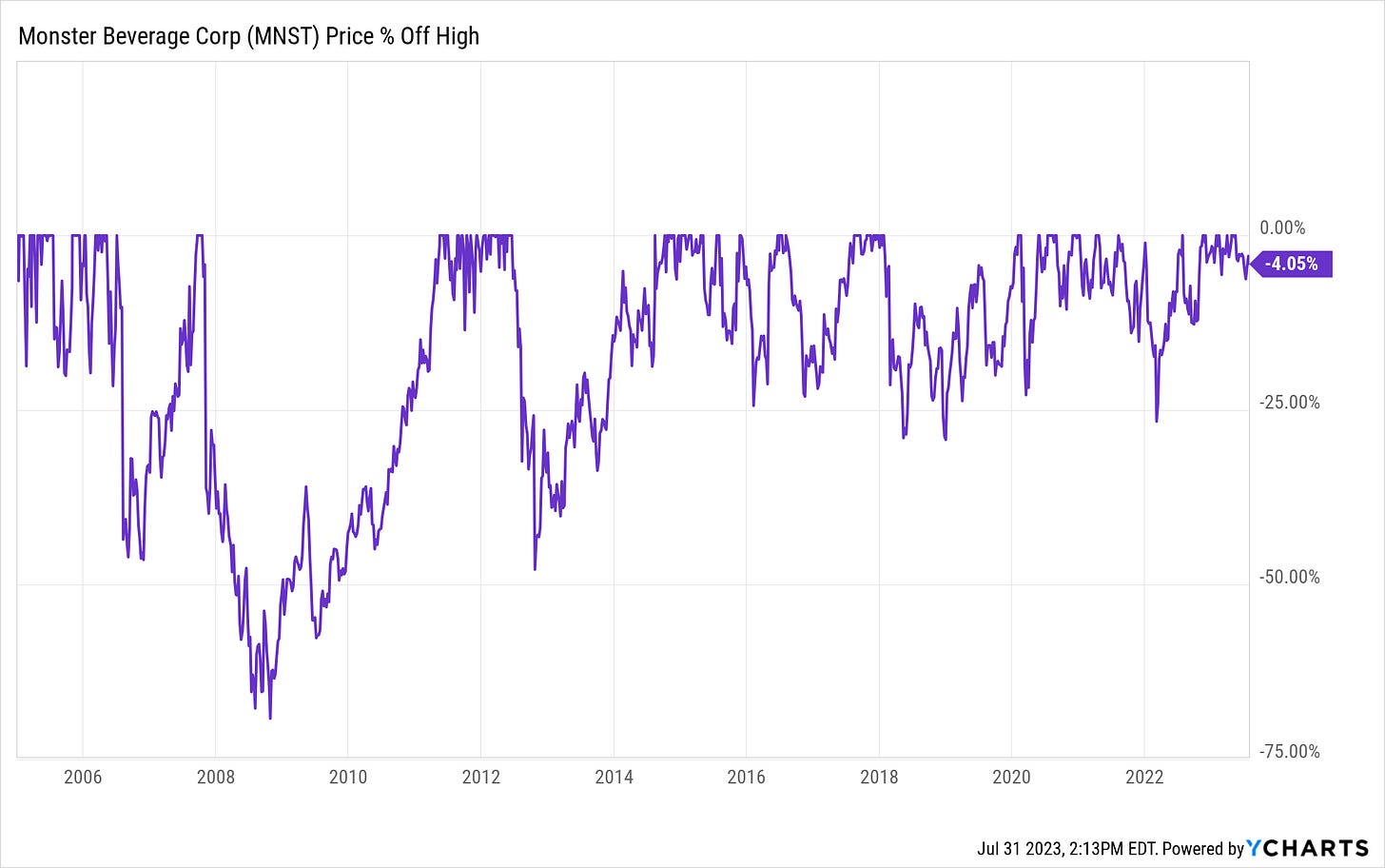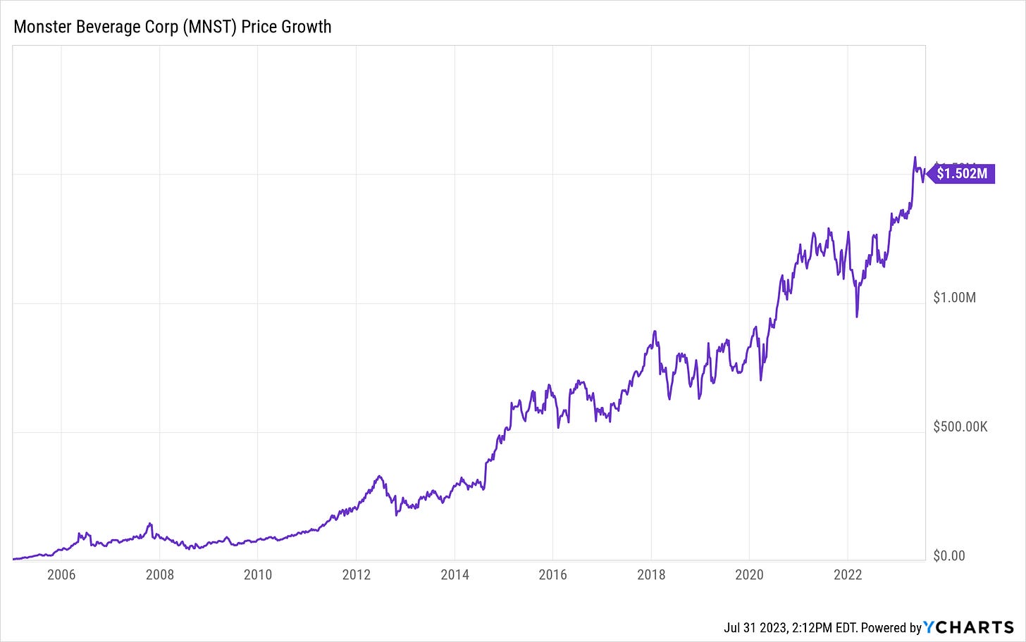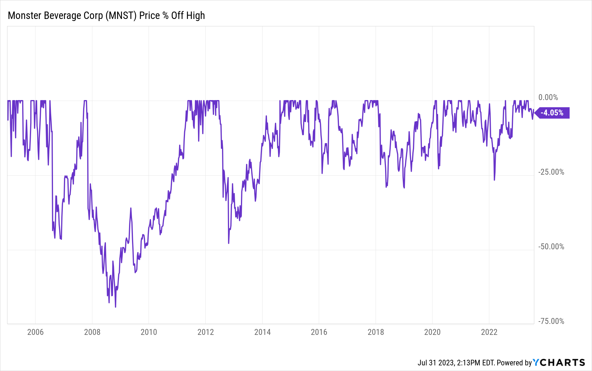 MNST 0.00%↑ is up nearly 15,000% since 2005, turning a $10,000 investment into $1.5 million in less than 20 years, and it’s dropped 40% from its all-time high six times.