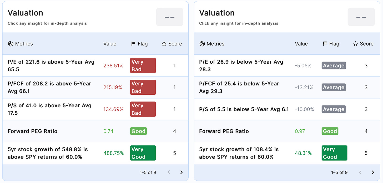 I can’t justify owning a $1T market cap company with a P/E of 221 and a P/S of 41. If that means I miss out on additional upside then I am totally fine with that. Especially when GOOGL 0.00%↑ is trading at a P/E of 27, a P/S of 5.5, and also stands to benefit from the AI boom.