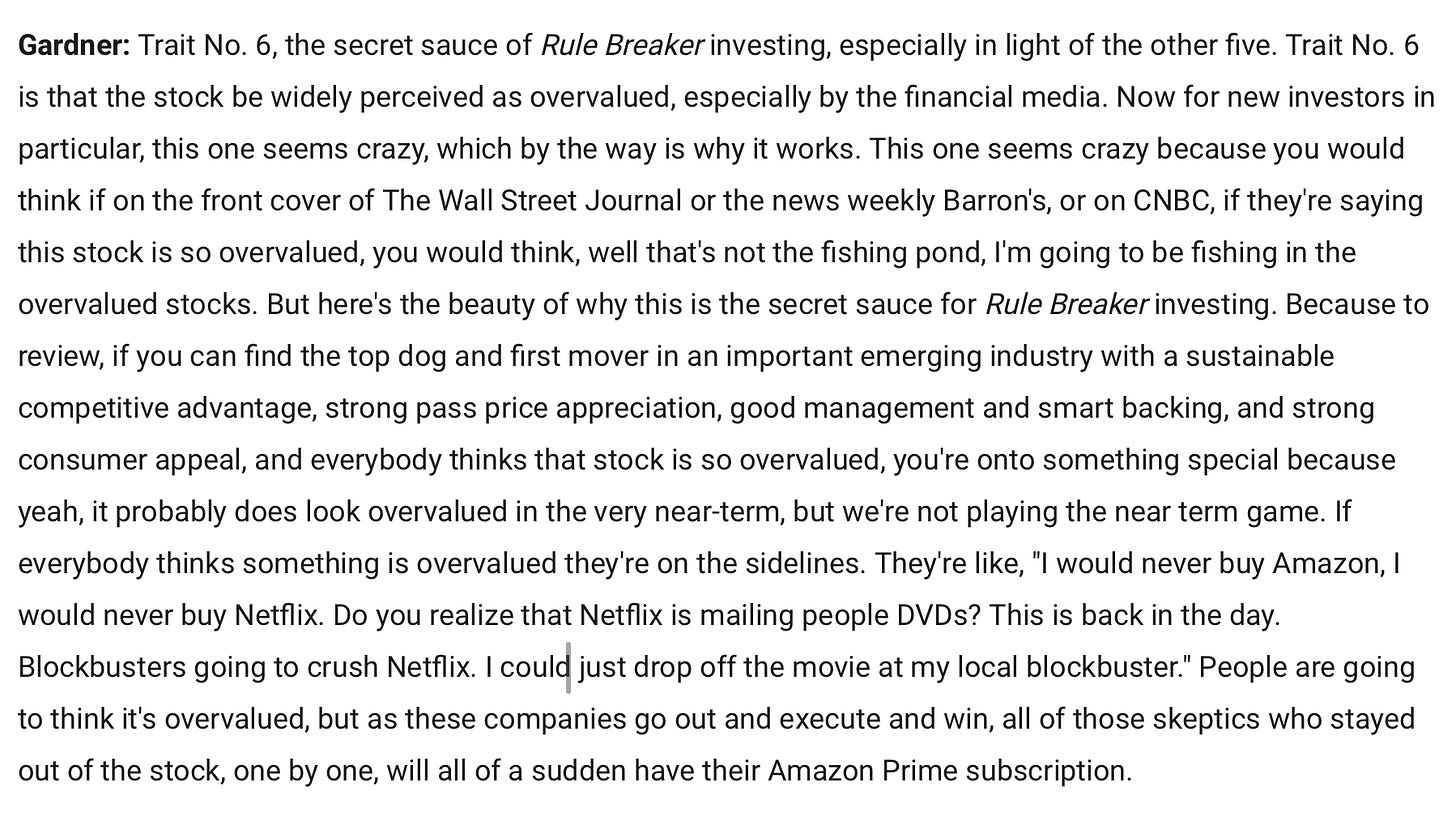 Trait #6 is that “the stock be widely perceived as overvalued, especially by the financial media.” Especially if the company displays traits #1 - #5 which Nvidia did.