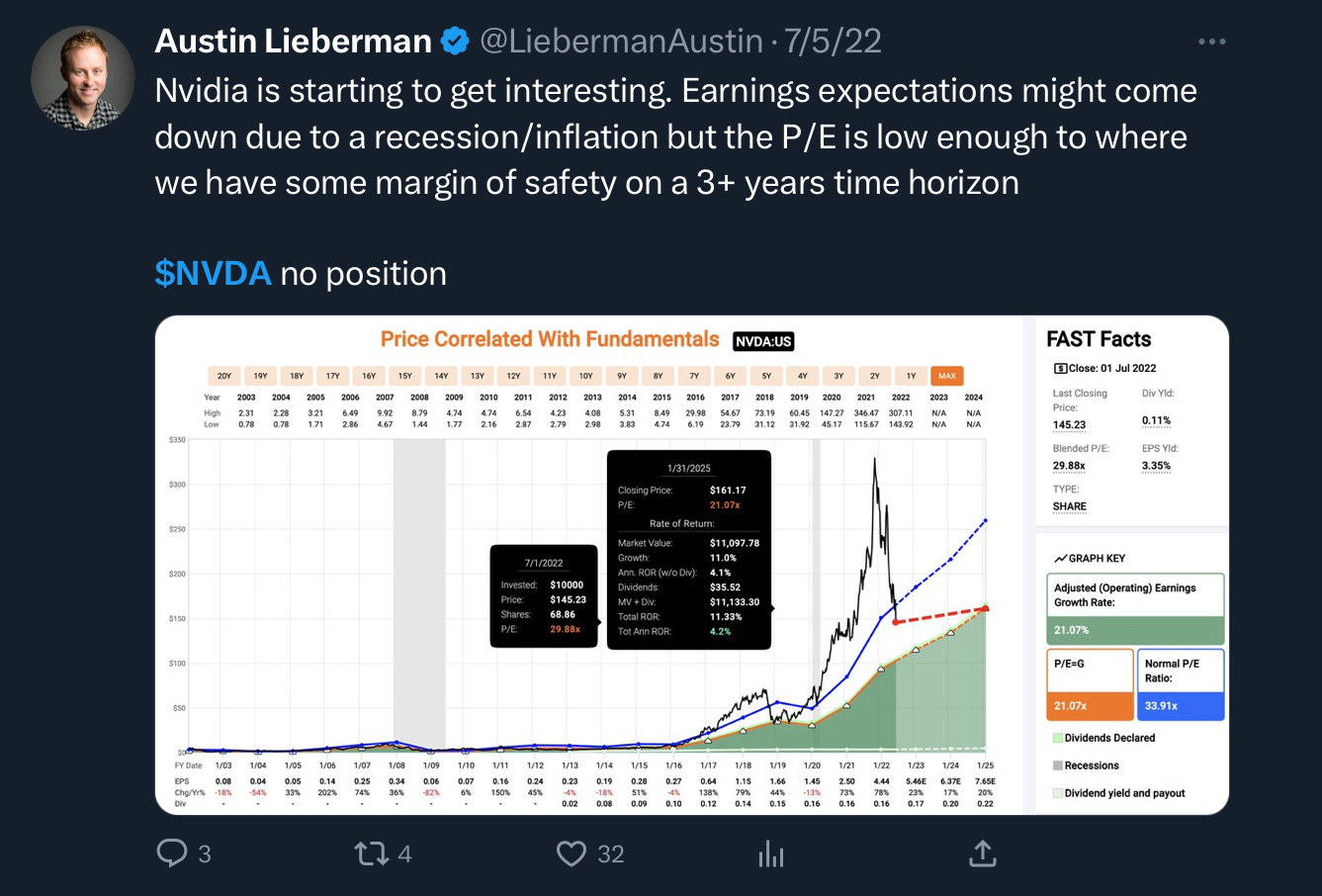 On July 5th, 2022 when NVDA 0.00%↑ was trading at $145 I shared that I thought Nvidia “was starting to get interesting”.
